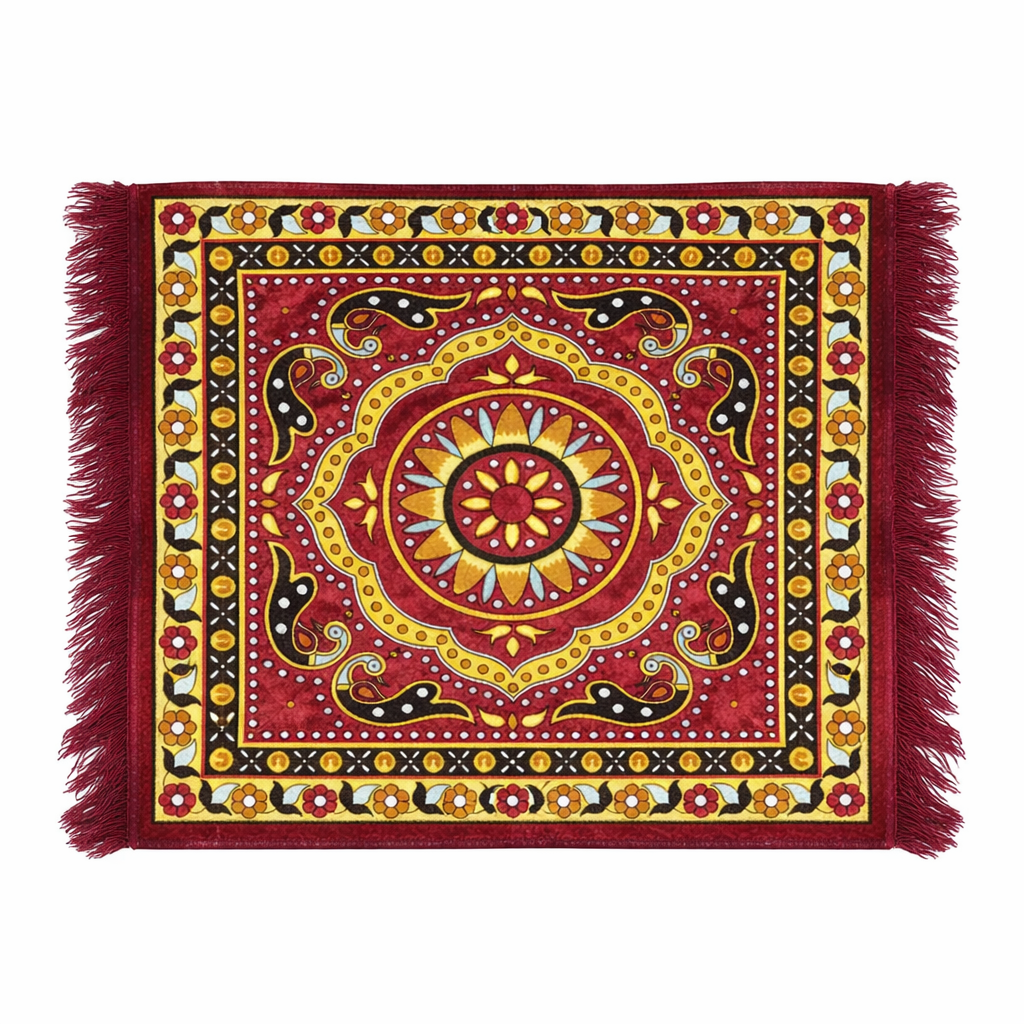 Bring positivity, devotion and divine energy into your sacred space with this Premium Velvet Pooja Mat / Pooja Aasan (24 x 24 inches). This beautifully designed mandir mat features a traditional mandala pattern in rich maroon and golden tones — perfect for your home temple, meditation, havan and daily pooja rituals.