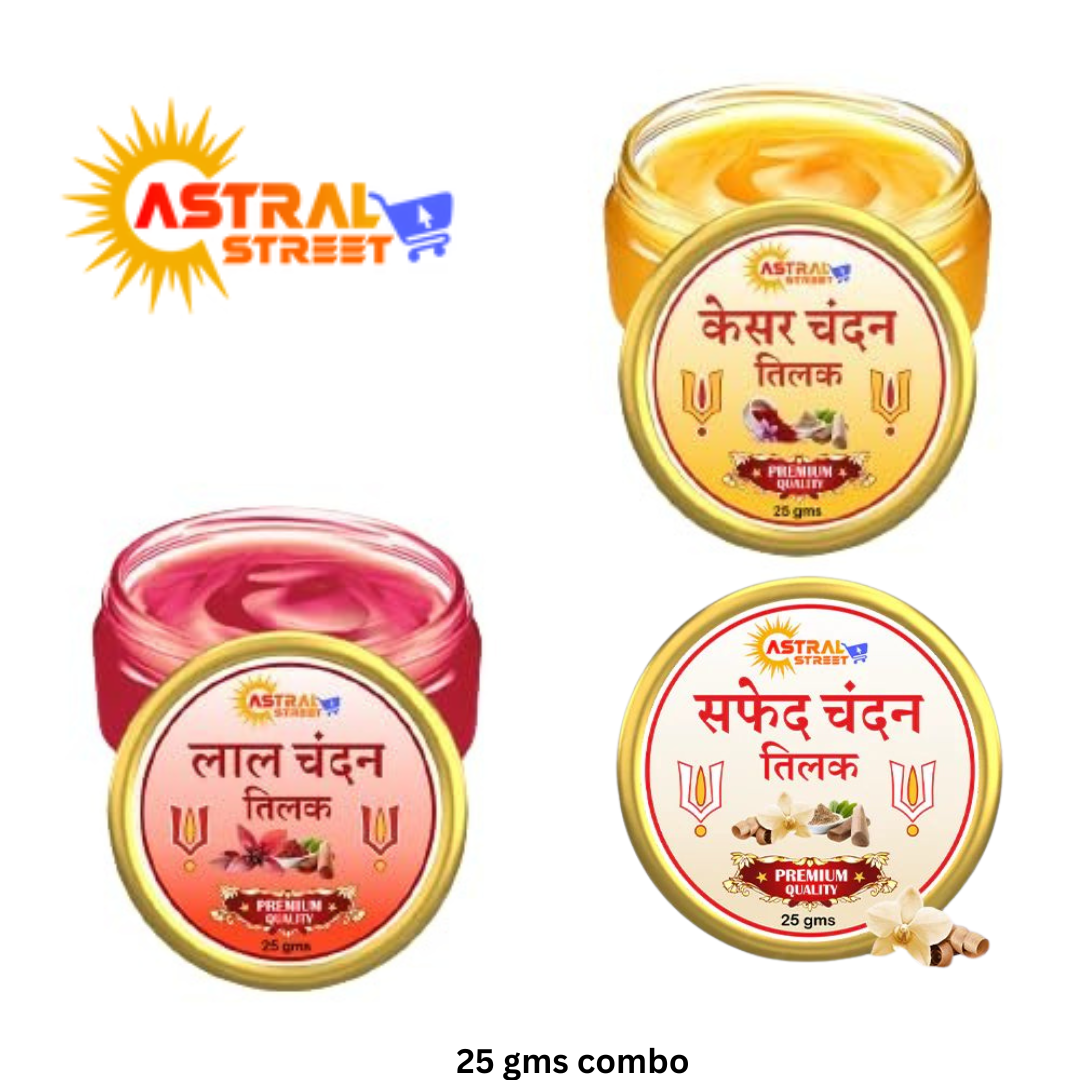 Astral Street Red Chandan Tilak + Kesar Chandan Tilak- + Safed Chandan Tilak 25gm pack of 3